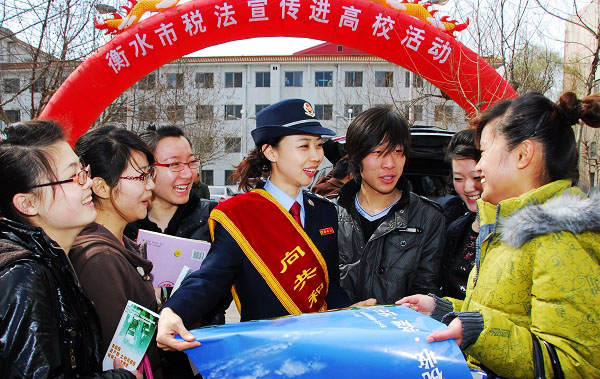 2010年4月1日上午,全國第19個稅收宣傳月到來之際,衡水市國、地稅局聯(lián)合來到衡水學(xué)院,拉開了稅收宣傳月暨稅收宣傳走進高;顒拥男蚰。