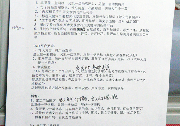 (6)拆分總體工作指標到每一天,下圖是天地彩鋼網(wǎng)絡(luò)推廣部的每日指標,可參考: