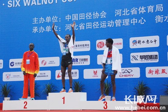 長城網(wǎng)衡水9月22日電(王永宏 扈煒)今日8時02分,2012衡水湖國際馬拉松賽鳴槍開跑,在衡水湖國際馬拉松賽廣場,來自世界26個國家和地區(qū)的參賽選手及馬拉松愛好者沖出起點。經(jīng)過激烈角逐,來自埃塞俄比亞選手雷格塞·海路·梅克楠以2小時8分7秒、黛米西·埃塔勒瑪胡·基達妮以2小時28分3秒的成績包攬全程馬拉松賽男女組冠軍。